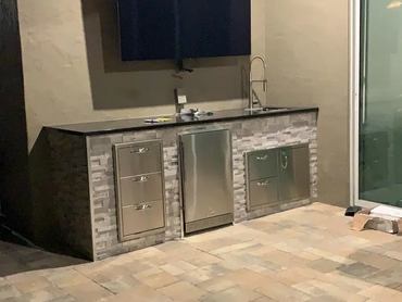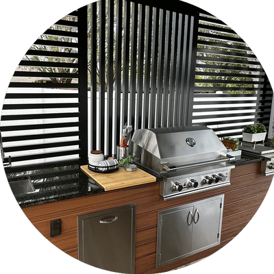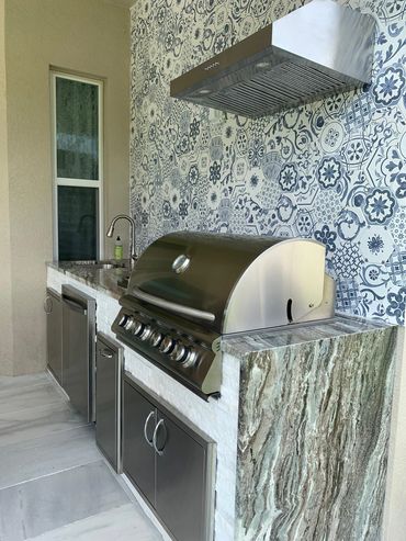"Outdoor kitchens with granite countertops, stainless steel appliances, and stone backsplashes—durable, stylish, and perfect for backyard gatherings. Explore our models below!"